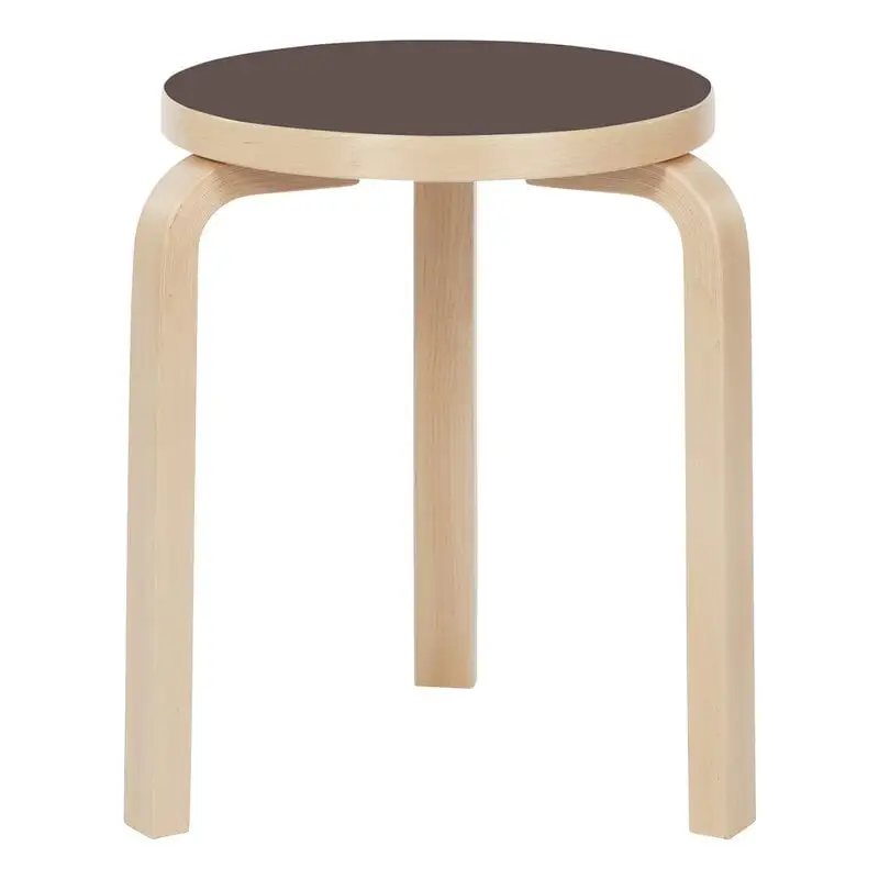 First introduced in 1933, the Aalto stool caused quite a sensation in the design world of its time due to its revolutionary L-leg structure. To bend the leg of Aalto’s stool, a piece of straight, solid birch is sawn open at the end in the direction of the fibres, forming the shape of a fan, with thin pieces of plywood then glued in the grooves. This structure makes it possible to bend the wood by heating or steaming it at the desired angle and when dry, it will have a very strong structure that can be easily attached to the seat.