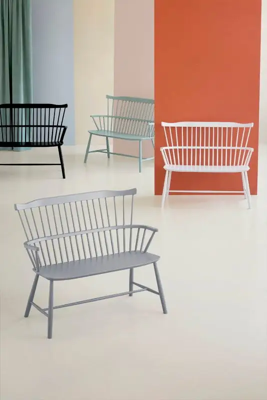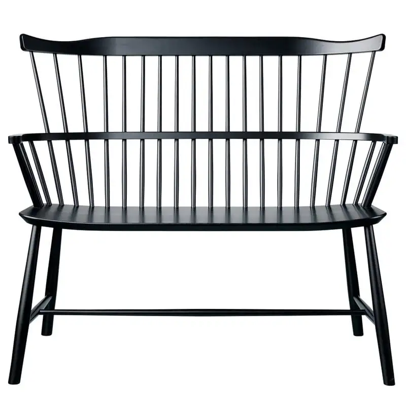 FDB Møbler’s J52D bench is a wider version of Børge Mogensen’s iconic Windsor chair J52B which was designed at 1952. A distinctive icon of the mid-century Danish design, the J52D bench features a sturdy beechwood frame, armrests, and a pleasantly high spindle back. The two-seater bench serves equally well by the dining table or as a relaxed seat in the living room or hallway. A perfect companion for the J52D bench is Mogensen’s J52B chair.