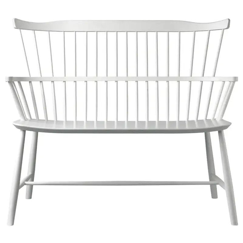 FDB Møbler’s J52D bench is a wider version of Børge Mogensen’s iconic Windsor chair J52B which was designed at 1952. A distinctive icon of the mid-century Danish design, the J52D bench features a sturdy beechwood frame, armrests, and a pleasantly high spindle back. The two-seater bench serves equally well by the dining table or as a relaxed seat in the living room or hallway. A perfect companion for the J52D bench is Mogensen’s J52B chair.