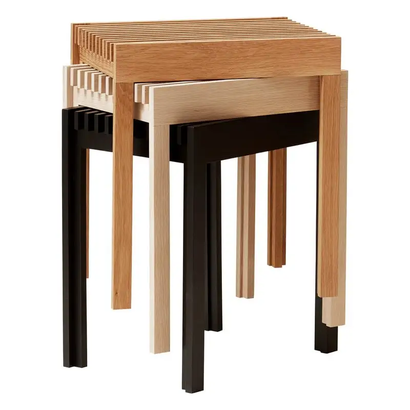 The Lightweight stool by Form & Refine is a multifunctional piece of furniture designed by Herman Studio that functions both as an additional seat and a side or coffee table. As the name implies, the stool is extremely light and therefore easy to move around as needed. Skillfully made oak, the stool comprises a sturdy frame and a seat made up of wood slats which add an elegant detail to the stool’s otherwise very minimalist look.