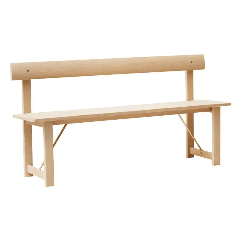The Position bench by Form & Refine is characterized by straight vertical and horizontal lines contrasted by the diagonal brassĀ supports under the seat. The aim of Herman Studio was to create a comfortable solid wood bench with a clear expression based on just a few, functional elements. Thanks to its minimalist design and sleek structure, you can place the Position bench by the dining table, to the hallway or into an enclosed porch, to name a few. You can also use the bench with a separately sold leather cushion. The Position bench has been crafted in Denmark from locally-grown oak.