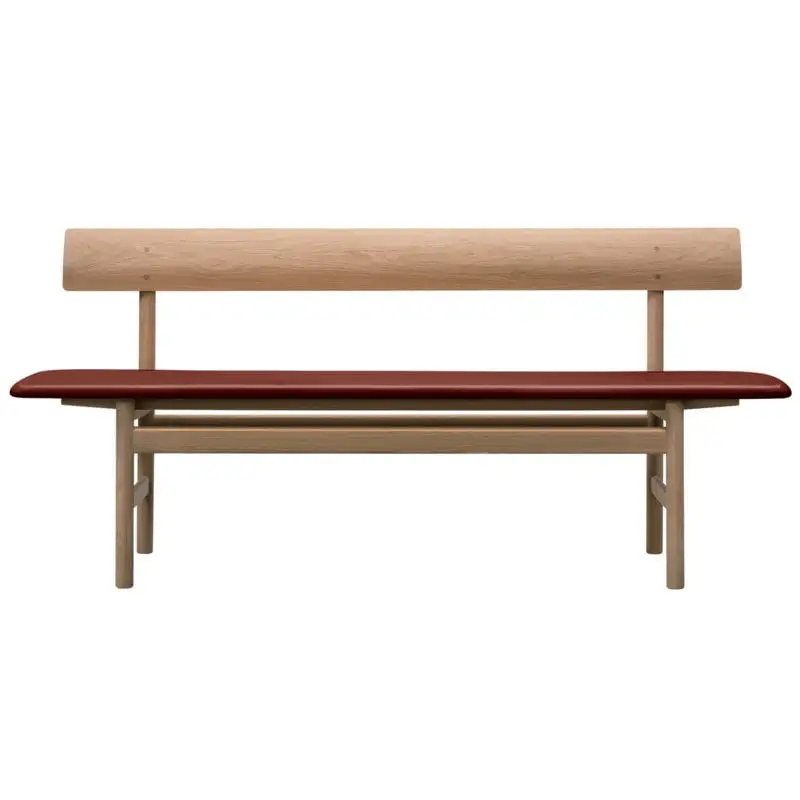 Fredericia’s Mogensen bench from 1956 follows the sleek form of Børge Mogensen’s classic chair design called Mogensen 3236. The timeless, leather-upholstered bench, complete with a backrest, is a great example of the Danish design legend’s minimalist style: high-quality materials and perfect proportions are combined to form a functional yet beautiful piece of furniture that will complement any space and atmosphere be it a modern or a more classic interior.