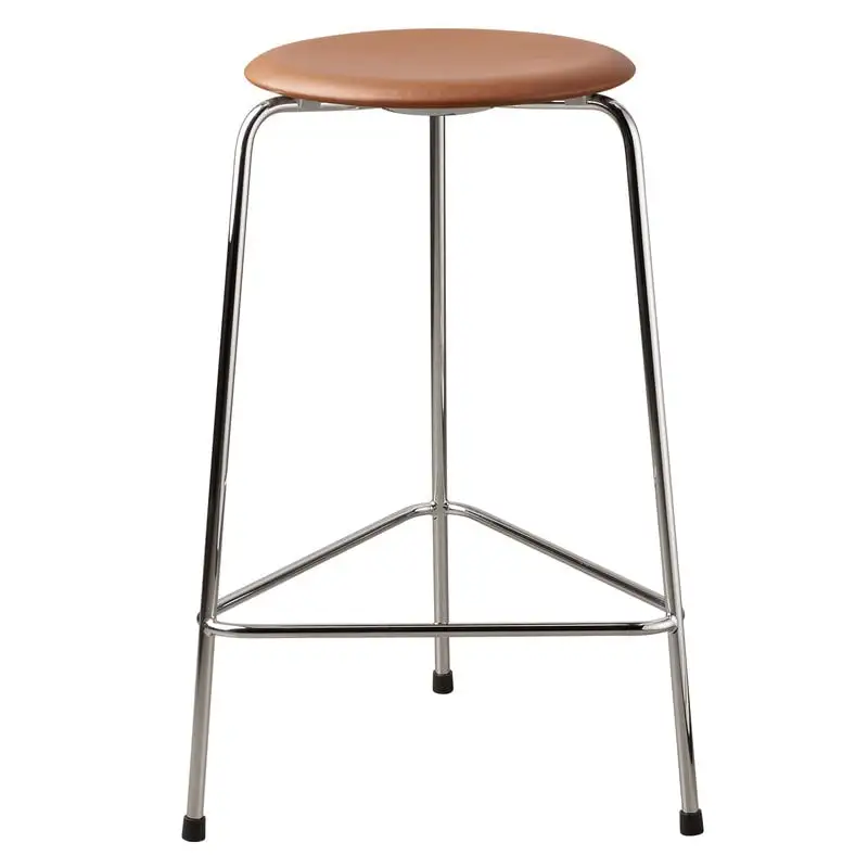 Fritz Hansen’s Dot high stool is a Danish design classic created by Arne Jacobsen, first presented in the 1950s together with the now legendary Ant chair. The seat of the Dot barstool is made of premium leather – it actually uses leftover leather from other Fritz Hansen chair classics. The three-legged Dot high stool is perfect for cafés and restaurants, but is also suited for the modern home next to the kitchen counter or bar.