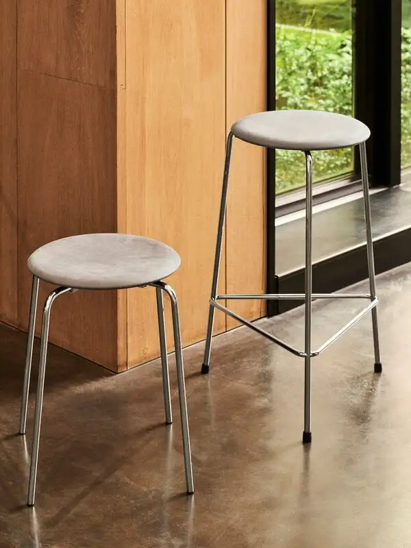 The multifunctional Dot stool can be used in the kitchen, hallway, home office, you name it. Due to its lightweight, stackable structure, the stool is easy to grab anytime an extra seat is needed. The seat of the Dot stool is made of premium leather – it actually uses leftover leather from other Fritz Hansen chair classics.