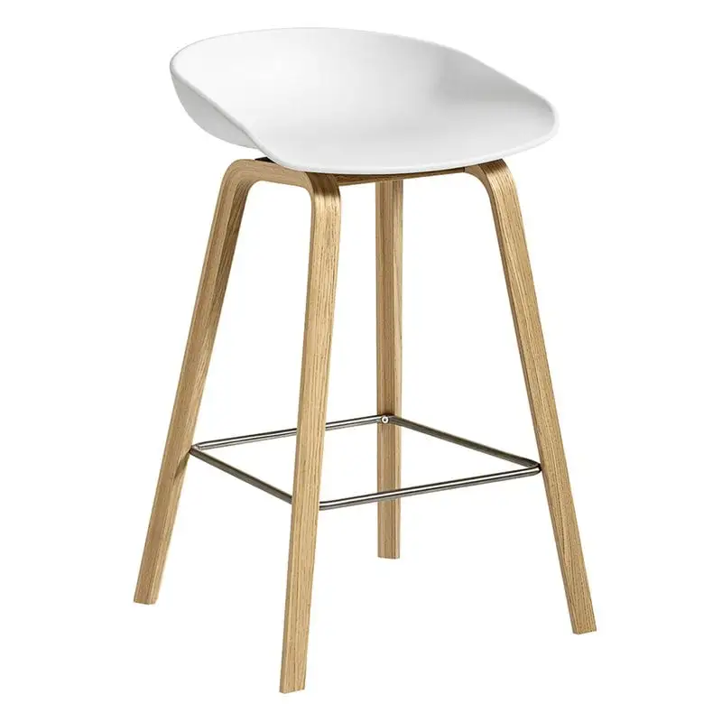 About A Stool AAS32 by HAY combines a sleek oak frame with a streamlined polypropylene seat. A result of a close collaboration between designer Hee Welling and HAY, the About A Stool bar stools are part of the About A Chair collection featuring chairs with outstanding simplicity and combinability.