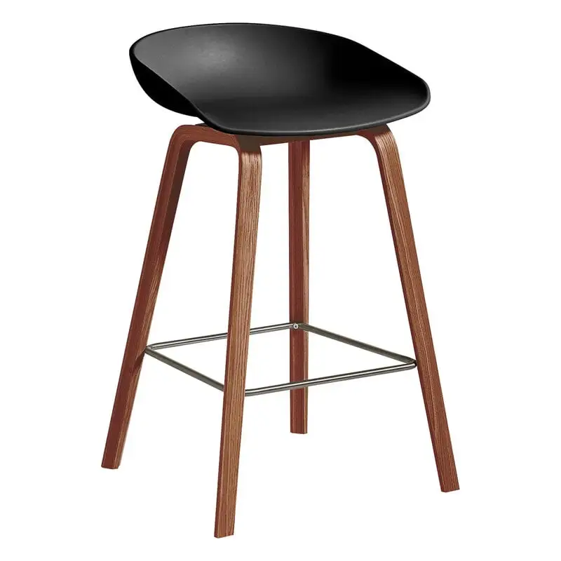 About A Stool AAS32 by HAY combines a sleek walnut frame with a streamlined polypropylene seat. A result of a close collaboration between designer Hee Welling and HAY, the About A Stool bar stools are part of the About A Chair collection featuring chairs with outstanding simplicity and combinability.