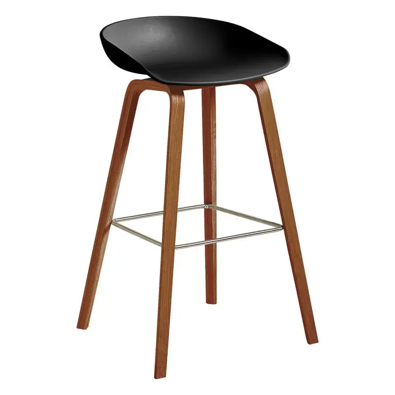 About A Stool AAS32 Eco combines the sleek appearance of HAY’s iconic About A collection with environmentally friendly materials. The EU Ecolabelled bar stool’s streamlined seat is crafted from recycled polypropylene – waste material from About A production lines, to be precise. The wooden frame is made from walnut finished with an eco-friendly water-based lacquer. What’s more, all About A Eco chairs and stools are entirely recyclable.