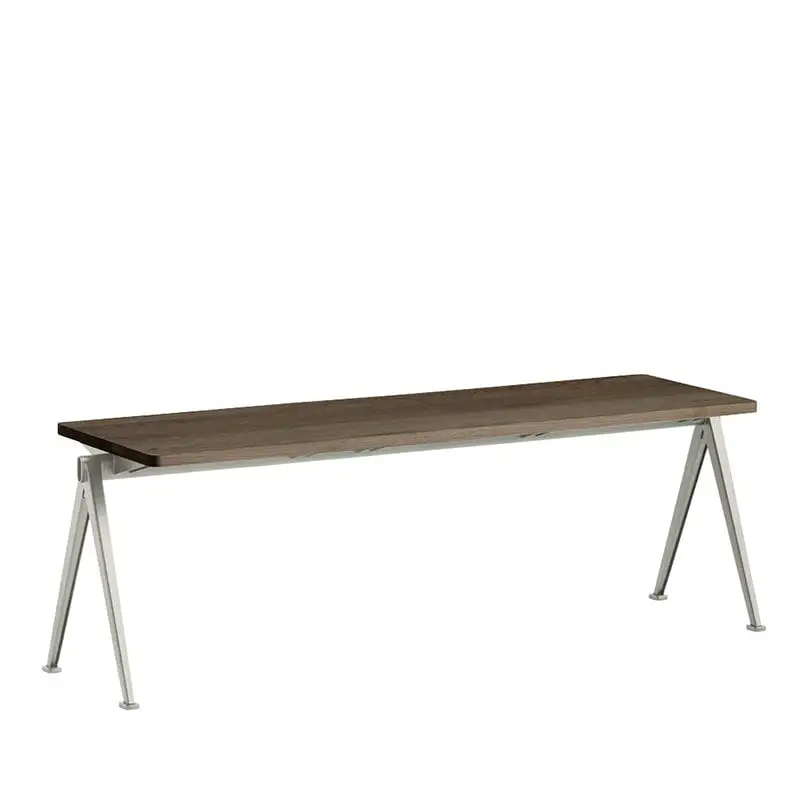 The Pyramid bench 11, by HAY in collaboration with Ahrend, is inspired by the design of the Pyramid table by Wim Rietveld. A simplistic combination of an angular steel frame and rectangular oak top, the Pyramid bench was regarded in the 1950s as a masterpiece in the innovative use of sheet steel, and it has maintained its fresh appearance until today. The Pyramid bench can be combined with the Pyramid table or used as a side bench or small side table anywhere in the house. Pyramid benches are available in different sizes and combinations of base colours and wood finishes.