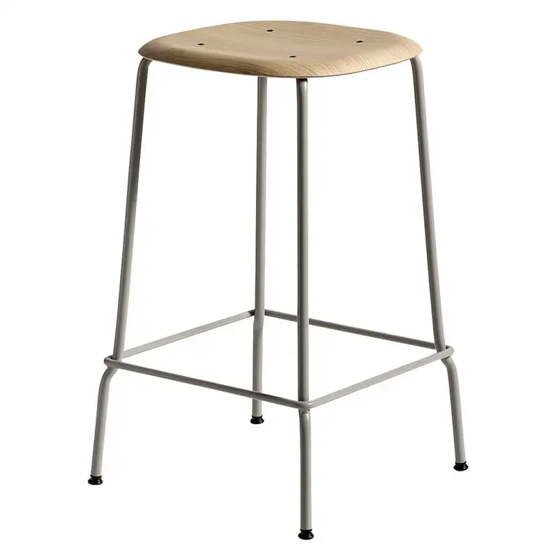 The Soft Edge 80 bar stool from HAY, as its name suggests, features a pleasant, rounded design: the edges of the seat curve down eliminating any sharp edges and corners. When creating the stool, design studio Iskos-Berlin utilized the latest innovations in moulded plywood that allow new three-dimensional forms and reduced consumption of natural resources. The result is Soft Edge, a lightweight bar stool is well suited for domestic kitchens and restaurants alike.