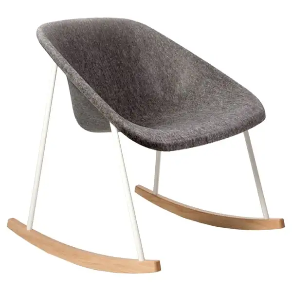 Kola Light is a lightweight rocking chair whose seat has an appealing and flowing form. Kola Light is made of 100% recyclable moulded polyester felt with a steel base and wooden rockers. With the Kola Light rocking chair, you can create nice and friendly looking interiors. The Kola Light rocking chair suits very well in casual meetings, waiting areas and lounges.