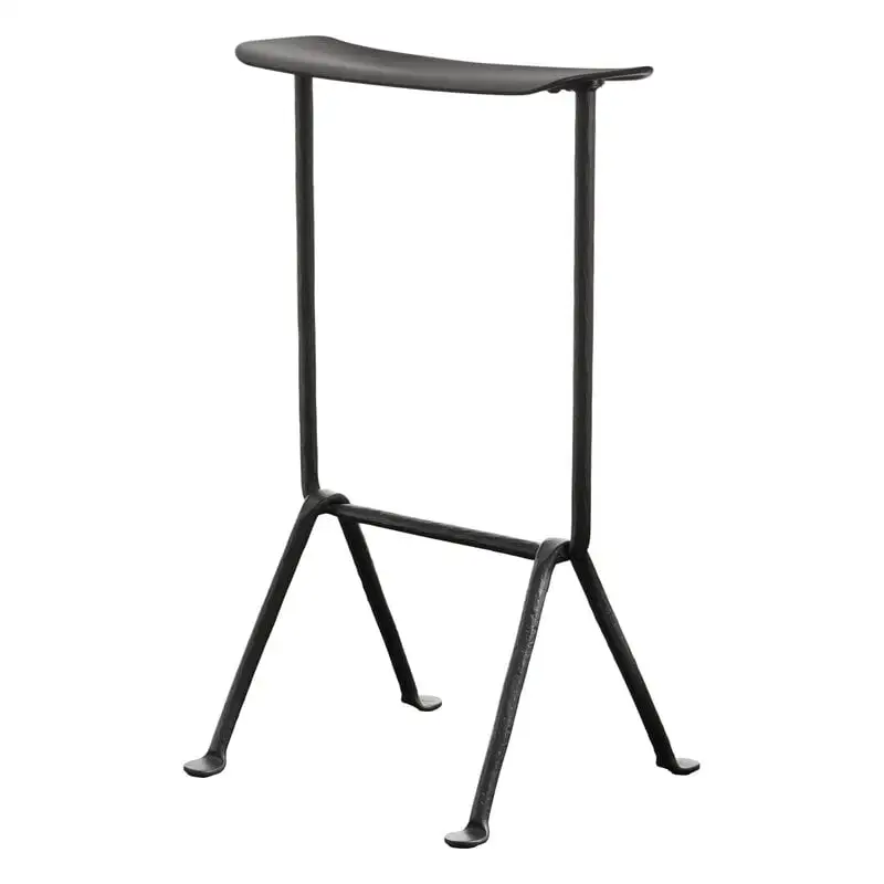 Officina by Magis is a collection of simple, elegant furniture with wrought iron legs. The Bouroullec brothers wanted to utilize the traditional forging technique in contemporary design and dreamed up a minimalist iron base featuring a raw finish with unique tool marks. The slender but sturdy iron legs have been galvanized and combined with polypropylene seats, which makes the Officina bar stools suitable also for outdoor use.