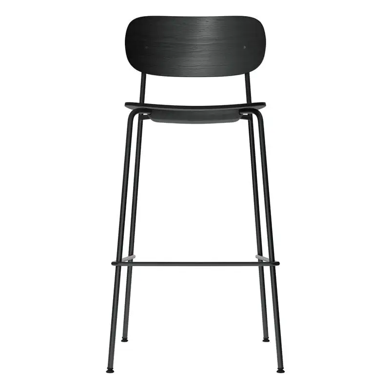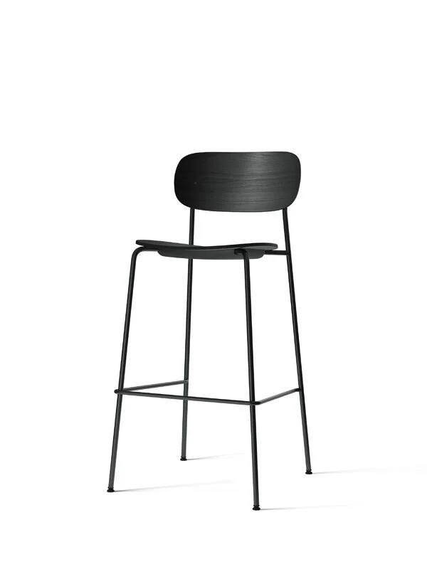 Menu’s Co bar chair is characterized by a balanced contrast between a sleek steel tube frame and a softly curved wooden seat. The backrest has been slightly tilted for optimal seating comfort and support.