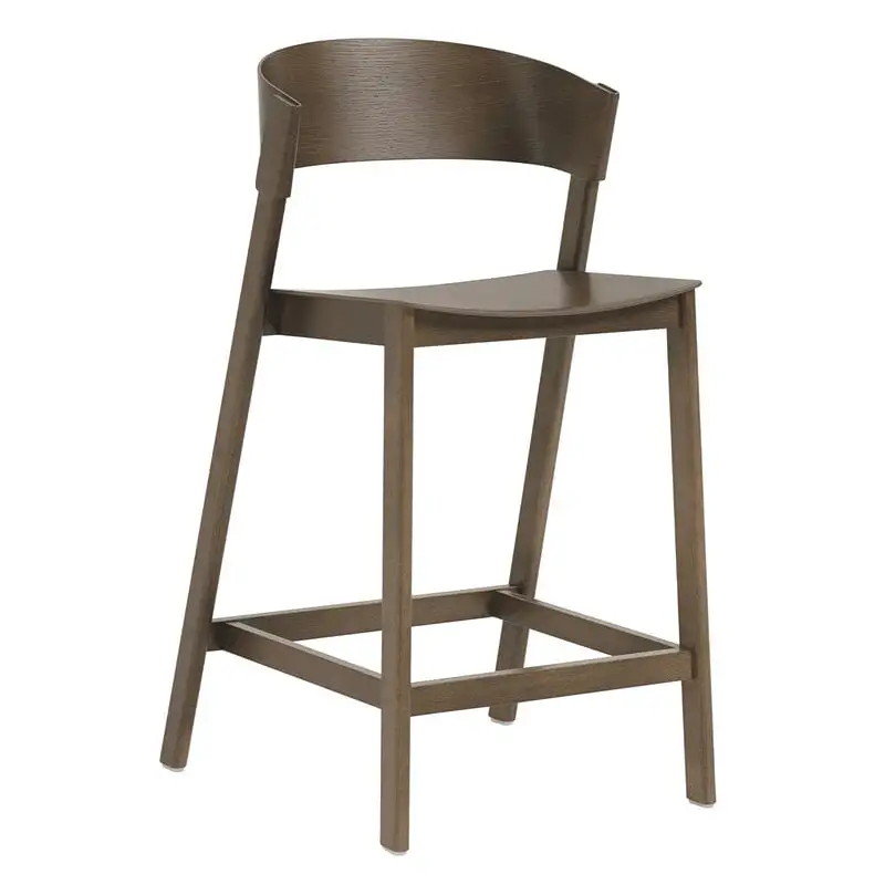 The Cover counter chair, designed by Thomas Bentzen for Muuto, is a contemporary interpretation of a classic wooden chair – in this iteration, raised up to the height of a counter. The Cover counter chair comprises a light, rounded veneer shell and strong wooden legs that give it an organic, grounded appearance. Thanks to the relaxed design, the Cover counter chair will find its place grouped around the kitchen island or along the worktop as well as in bars, cafés, and other commercial locations.