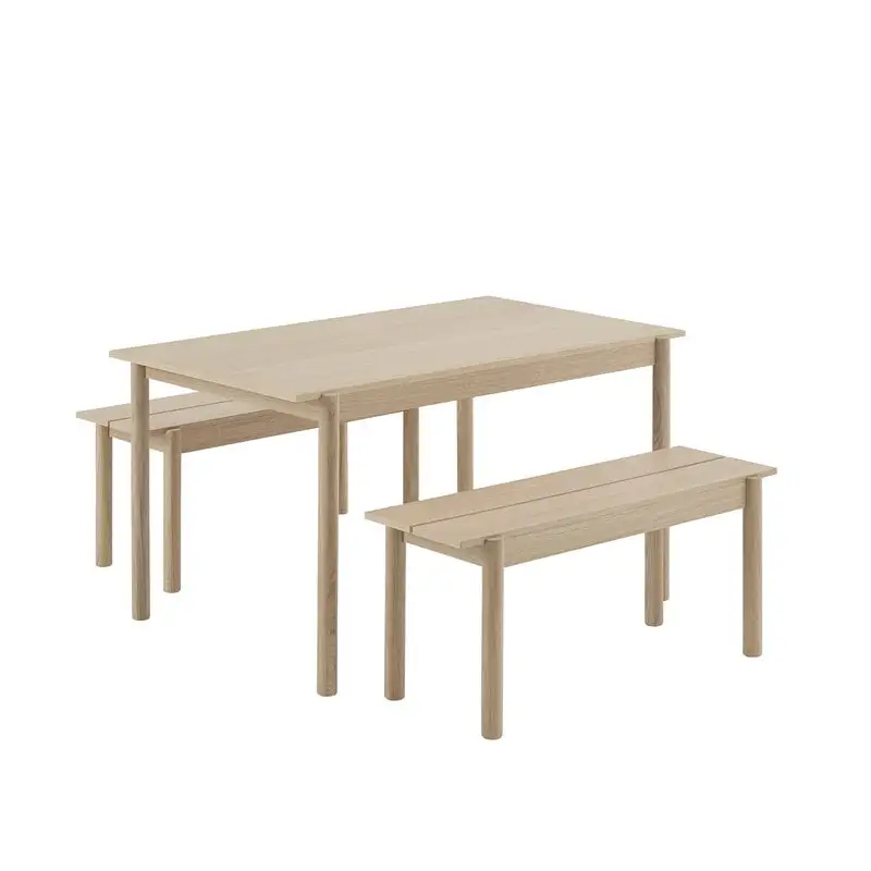 The Linear Wood bench by Muuto is characterised by a modern yet timeless expression inspired by the meeting of lines and shapes. The designer, Danish Thomas Bentzen, wanted to unite the warmth of natural wood with a simple, understated shape in order to create a dining set with straight lines that are softened by subtle details like the rounded legs that go all they way to the top. Place the bench in the entryway or create a matching dining set with the Linear Wood table.