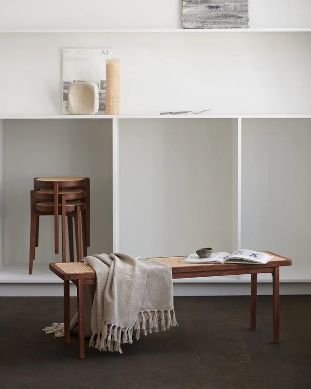 NORR11’s Le Roi bench features a sleek solid wood base and a classic French rattan seat. The bench’s downward tapering legs are crafted from solid oak, and the seat is woven by hand. In addition to seating, the Le Roi bench can also serve as a small side table for example next to a sofa, bed or window. Launched in 2018, the Le Roi collection was designed by Kristian Sofus Hansen and Tommy Hyldahl.