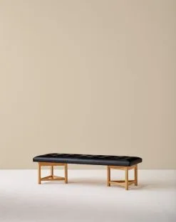 Ornäs Kolmiojalka Bench, 180 Cm, Oak – Black Leather