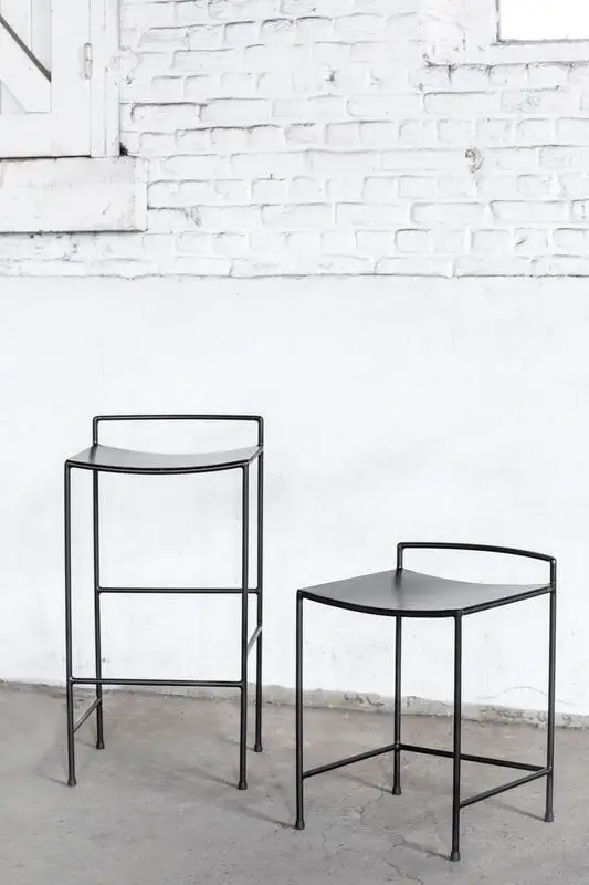 Serax’s Nello bar stool is a unique piece by artist and blacksmith – and former professional dancer – Antonino Sciortino. The playful combination of straight lines and curved, imperfect shapes makes Nello not only a practical everyday essential but also an interesting and discussion-provoking work of art. The metallic chair is sculptural yet attractively airy in appearance, and it is both a perfect companion to a kitchen island and an eye-catching seat for the bar.