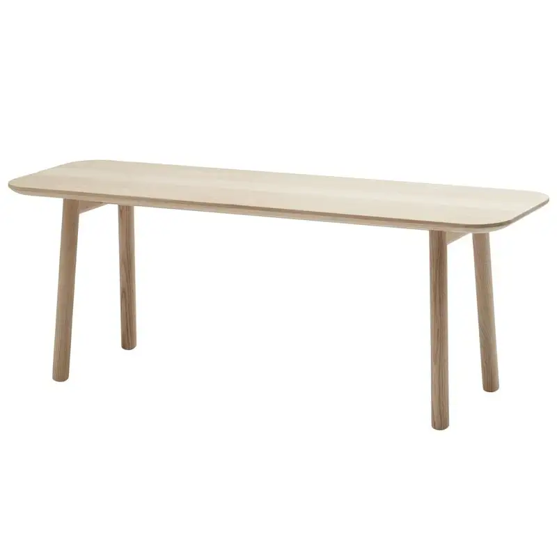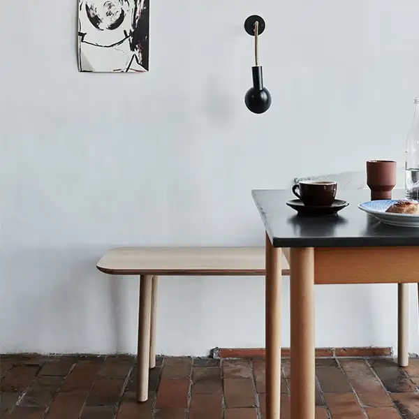 Skagerak’s Hven is a versatile wood bench that features an inviting, airy design due to its round legs and corners. Made of solid untreated oak sourced from sustainably manages forests, the bench is adorned with a beautiful natural grain pattern and measures 123 cm x 36 cm.