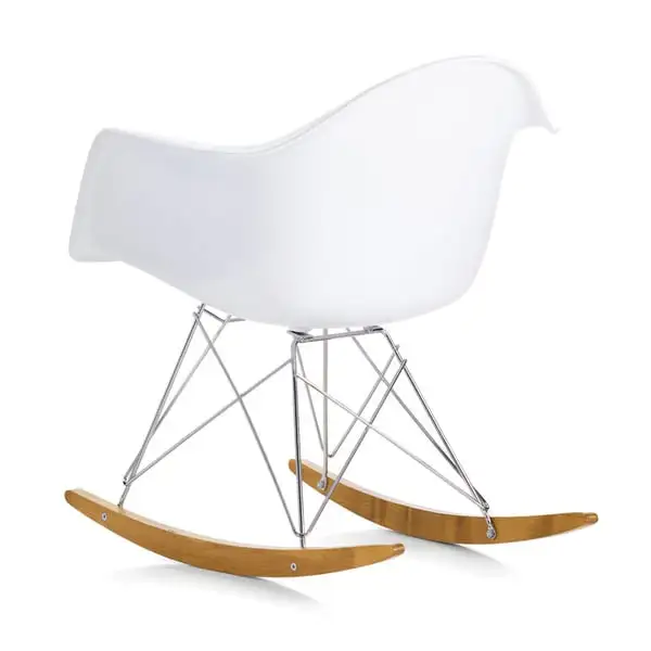 Vitra’s Eames RAR rocking chair is a charming combination of a plastic seat, chromed metal frame and wooden legs. The name RAR comes from the words Rocking Armchair Rod Base.Â