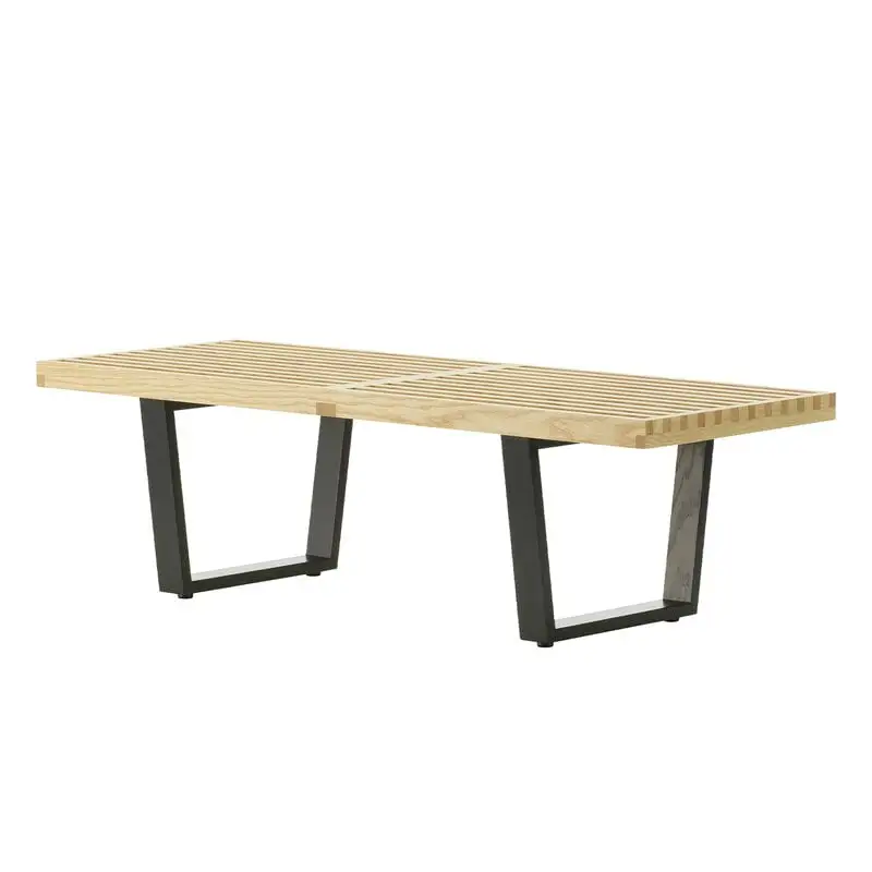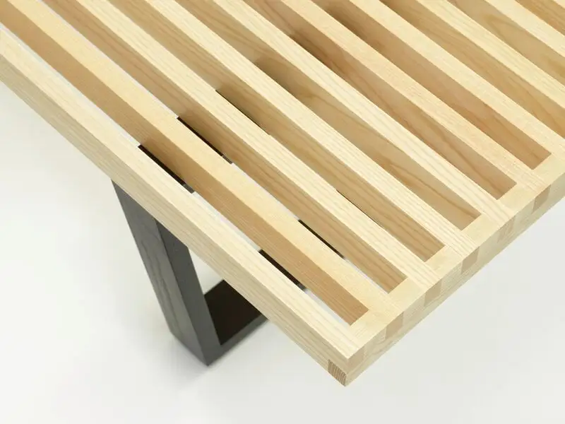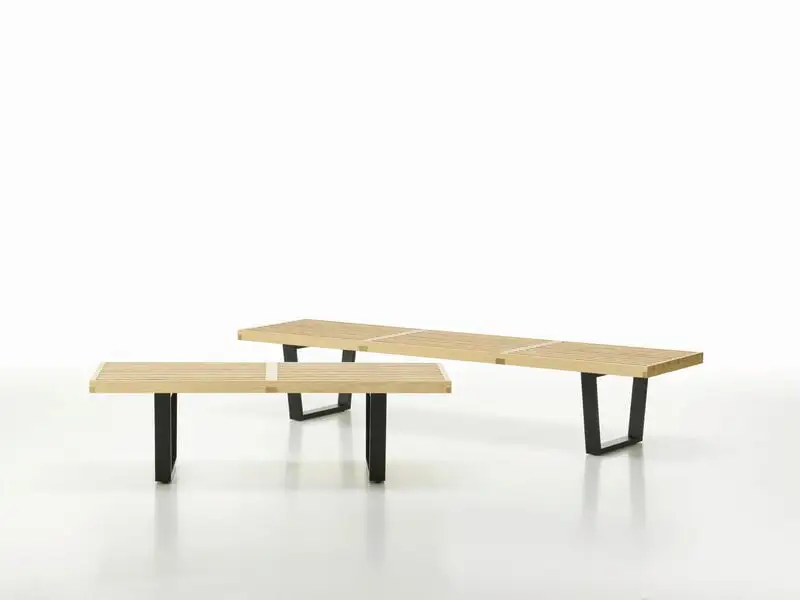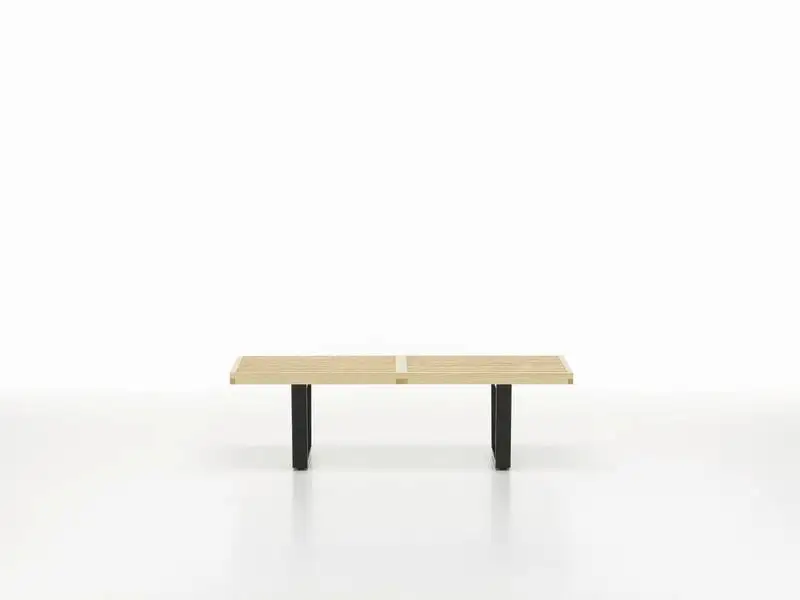 Vitra’s Nelson bench is a design classic from the 1940s developed by George Nelson, whose background in architecture is visible in the clean, functional design of the bench. The airy charm of the Nelson bench comes from slim pieces of ash wood with blank spaces between them. The pieces are held together with strong finger joints and supported by two black, angular legs. Besides a seat, the Nelson bench can also be used as a side table.