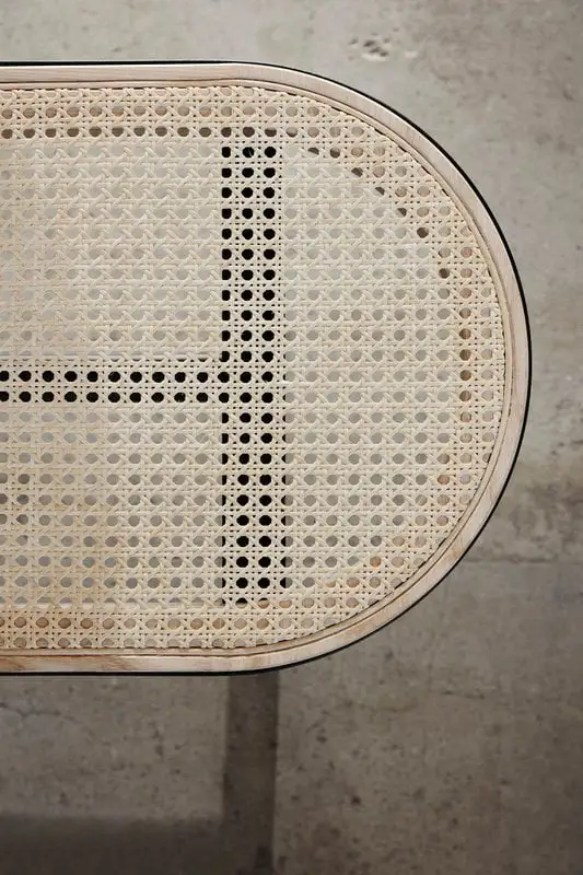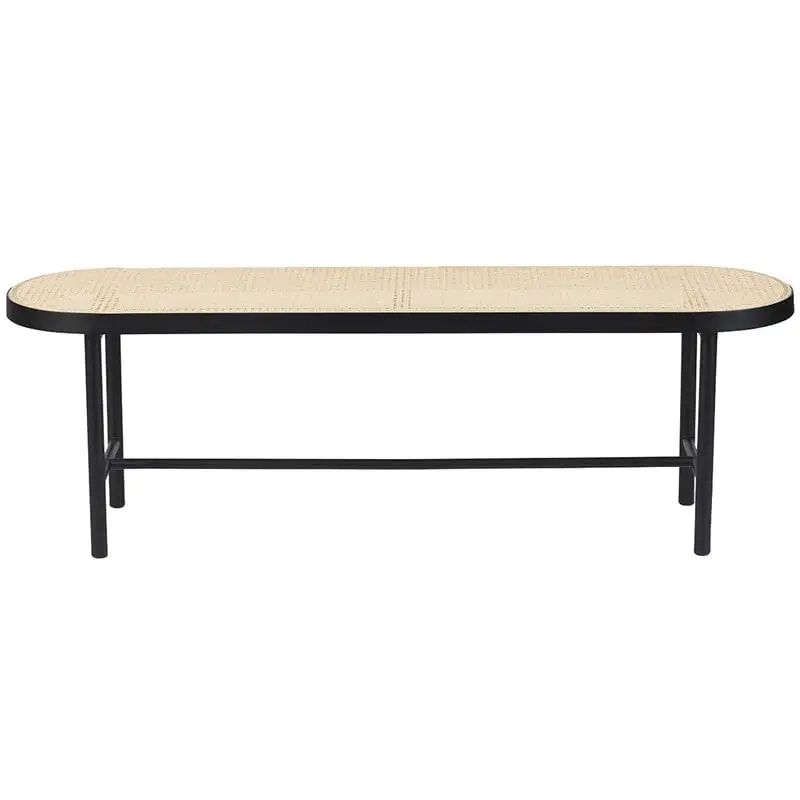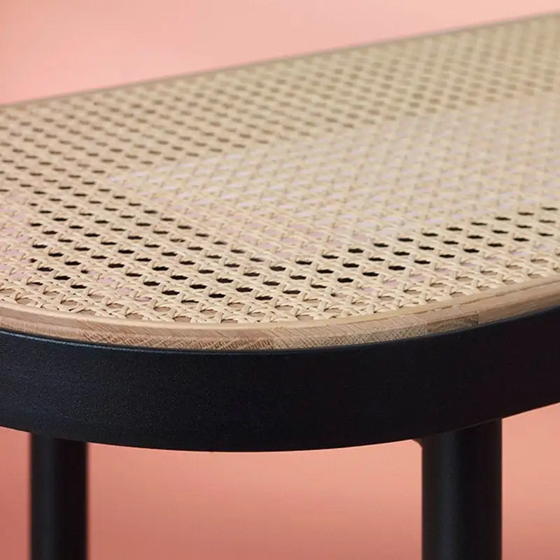 Be My Guest bench, designed by Charlotte Høncke for the Danish Warm Nordic, combines an airy metal frame with a sophisticated wicker seat. The lightweight, oval-shaped Be My Guest bench is a great companion for the dining table of the same range, and it also functions as an independent bench or side table in any room. A lovable union of classic and contemporary references, Be My Guest bench and dining table have been manufactured in Denmark and released in 2017.