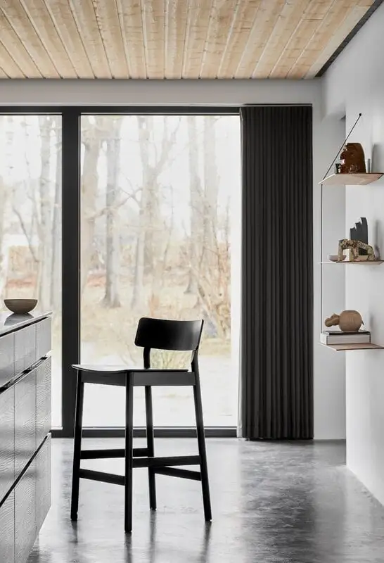 The Pause bar stool from Woud, with its simple wooden structure and elegant joints, is the embodiment of modern Nordic design. Finnish designer Kasper Nyman has created the Danish brand a beautiful oak chair that features clean lines and a broad, rectangular backrest. Pause is made of solid oak and oak veneer and available in white-pigmented lacquer and colourful painted finishes. The timeless design of Pause bar stool pairs easily with both, modern and more traditional kitchen counters and bar tables.